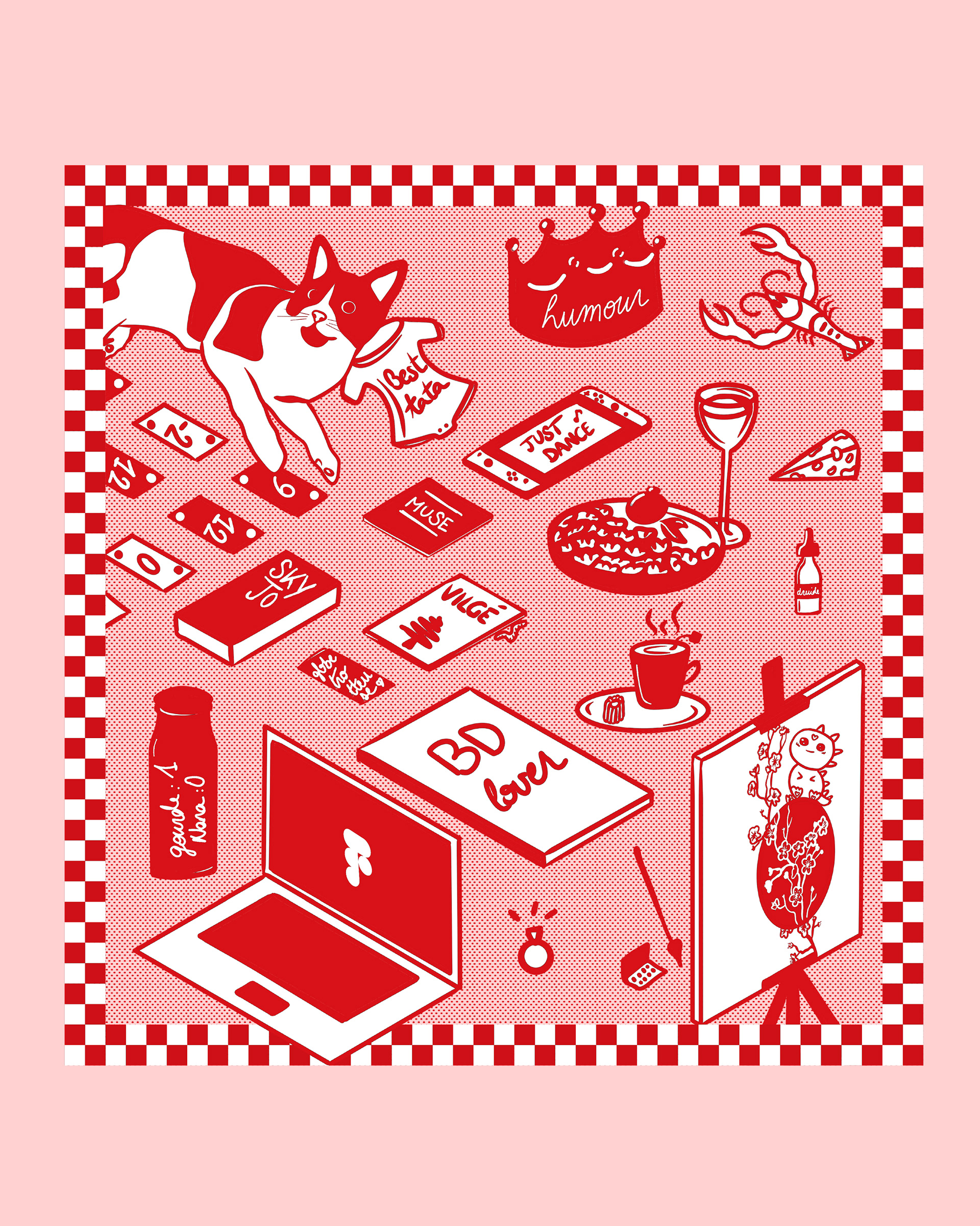 Pour cette commande spéciale EVJF, l’idée était de transformer un t-shirt en mini capsule de souvenirs : goûts musicaux, voyages, symboles perso… tout ce qui fait l’histoire d’une personne. Design à l’arrière, logotype sobre à l’avant. Impression réalisée à l’@atelieramelot.